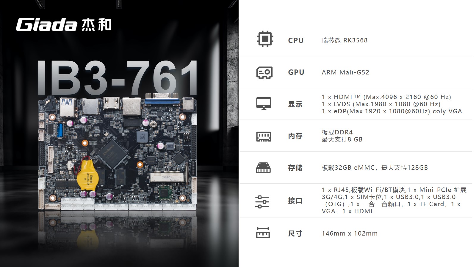 沐鸣娱乐工业级ARM主板IB3-761基于瑞芯微RK3568四核64位处理器开发。内置1TOPS算力的NPU,满足轻量级端侧AI计算应用。