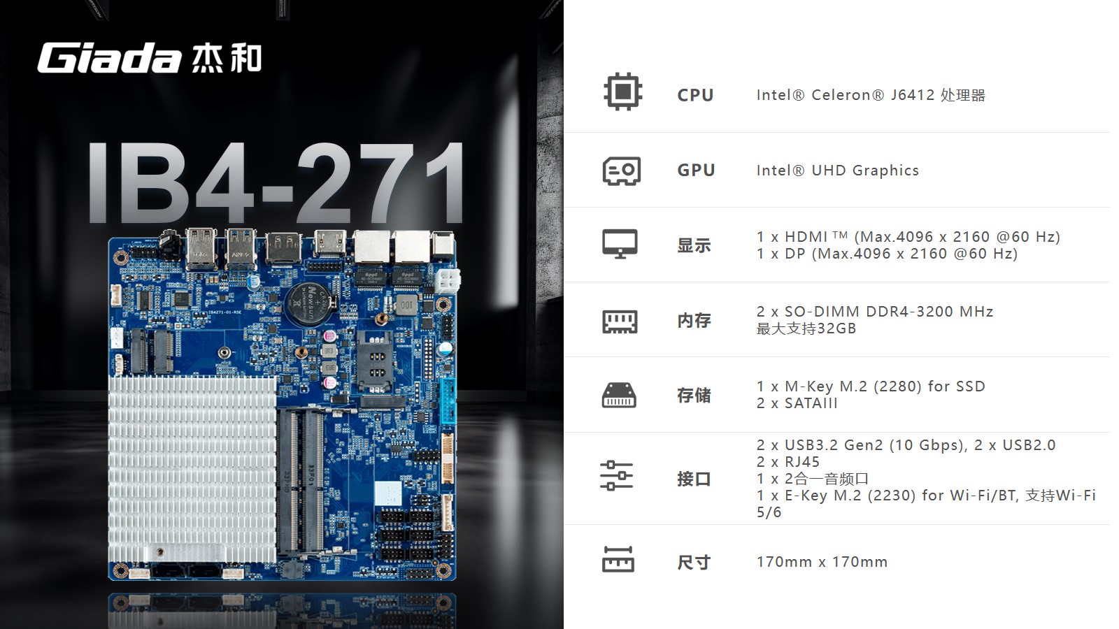 沐鸣娱乐IB4-271搭载的是Intel® Celeron® J6412处理器,Elkhart Lake平台在单线程性能上提升了1.7倍,在多线程性能方面提升了1.5倍,具有三个显示输出,包括DP、HDMI 和 LVDS 端口,能够为工业的多媒体应用、标牌显示和数字菜单提供足够的灵活性。