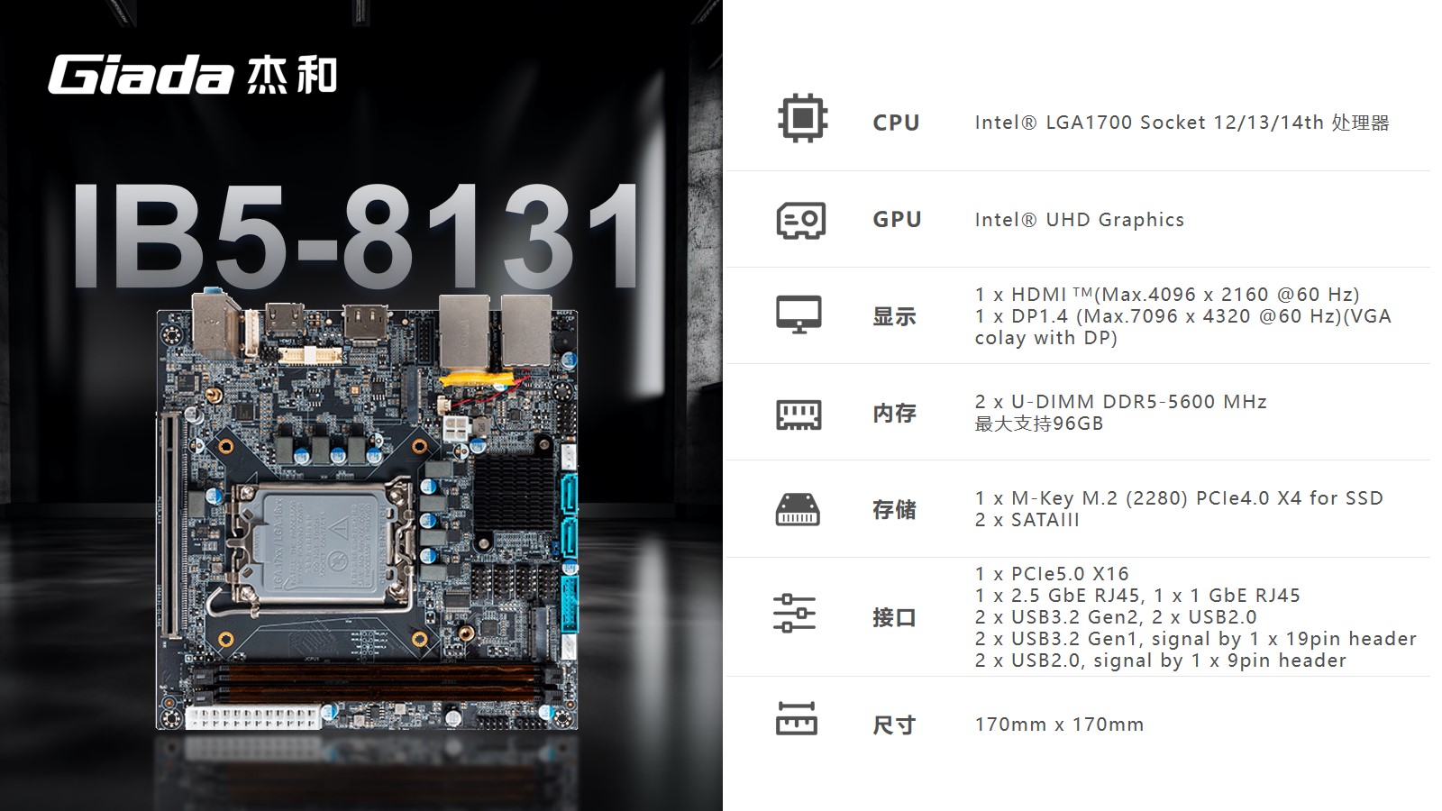 沐鸣娱乐科技嵌入式主板IB5-8131采用Intel® B760 芯片组,支持Intel® 第12代至14代处理器。大容量内存支持配备2个U-DIMM DDR5 内存,最大支持96GB,频率最高可达5600MHz,可灵活扩展NVMe SSD和2个SATA3.0存储。基于此特点,智能柜员机可满足设备流畅丝滑运行的功能。