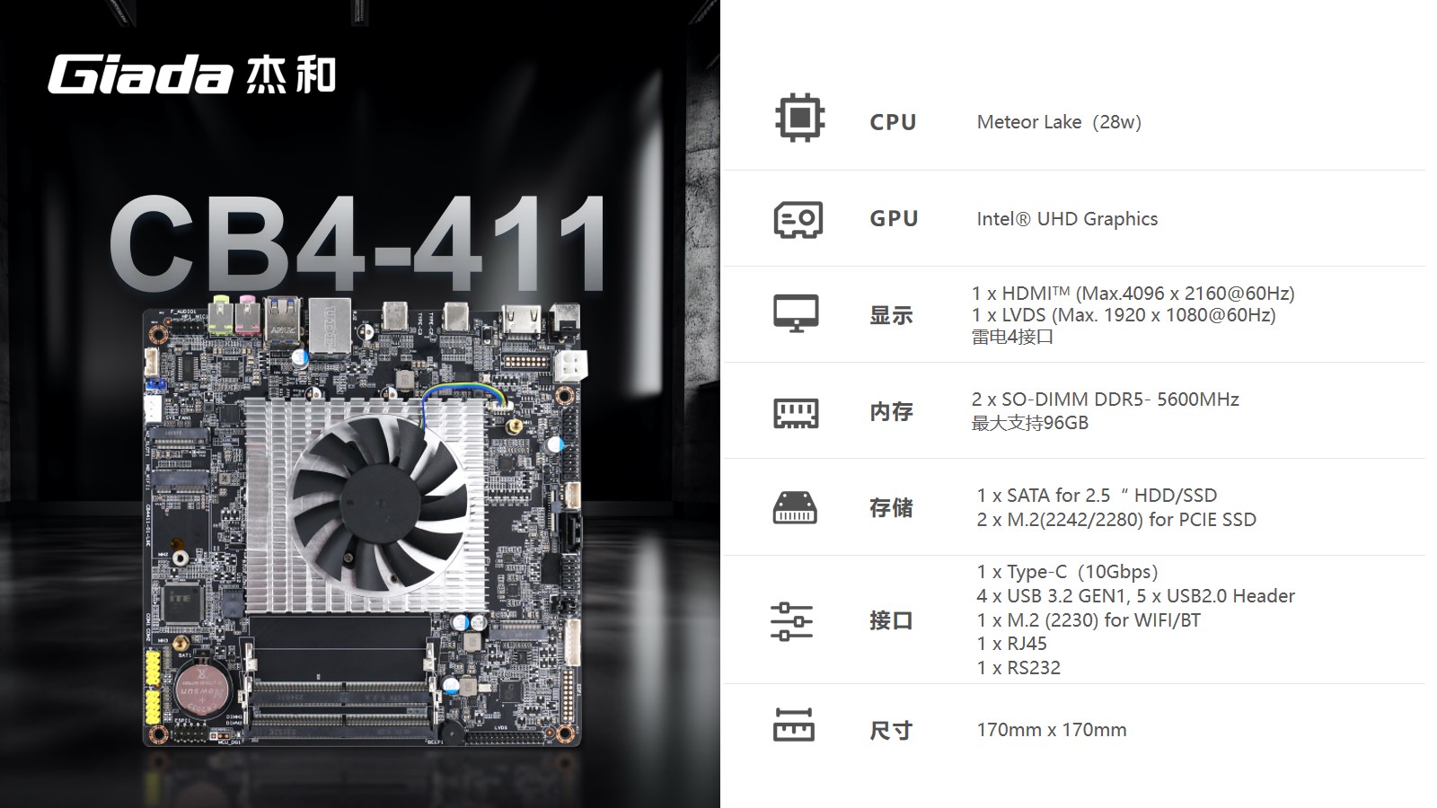 基于人们日渐新增的AI算力需求,沐鸣娱乐科技推出AI一体机专用主板——CB4-411。该主板设计紧凑,尺寸仅为170mm x 170mm。
