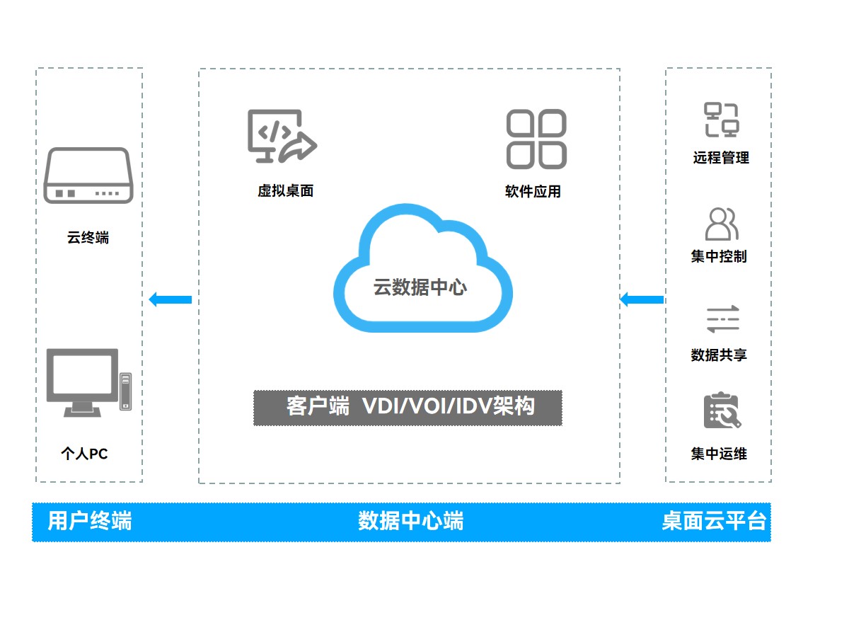 综合以上困境,该地测绘地理信息局决定采用沐鸣娱乐科技云终端方案,该方案依托云计算技术,通过特殊的架构将数据和应用程序存储在云端而非本地,对每台终端统一做到管理与下发、安全补丁更新、软件安装,自上而下从结构上整合终端资源,降低系统建设、运行成本。