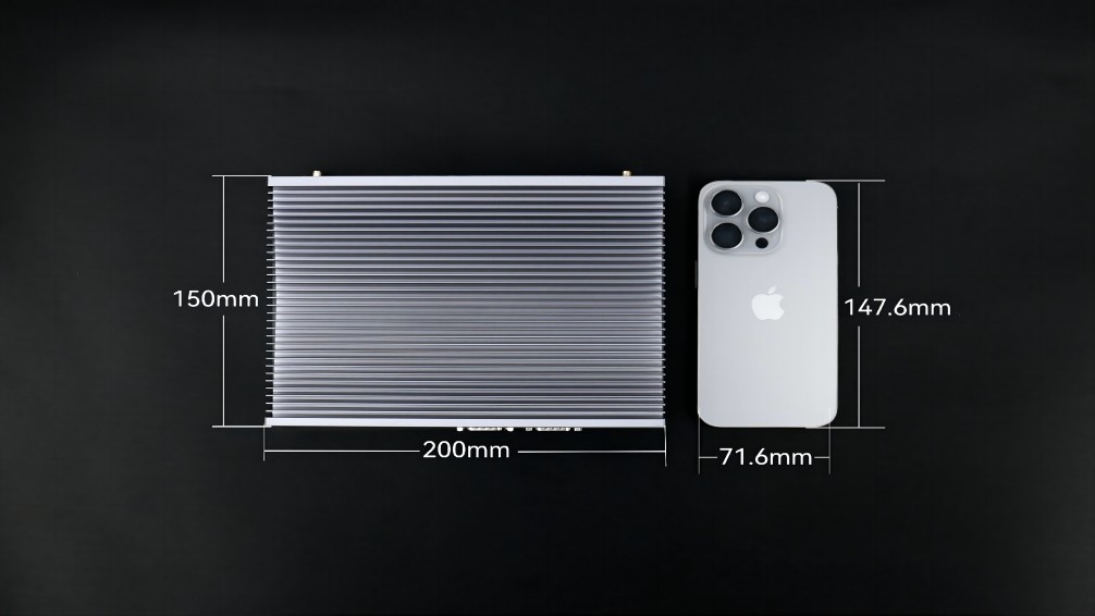没有了风扇这一部件,体积也更为小巧,能轻松嵌入各类设备或狭小空间,完美贴合特定场景需求,例如:沐鸣娱乐AE613,其三围尺寸是200mm x 150mm x 50mm,与iphone15的尺寸对比,宽度仅比其高度多2.4毫米,体积仅有1.5L。