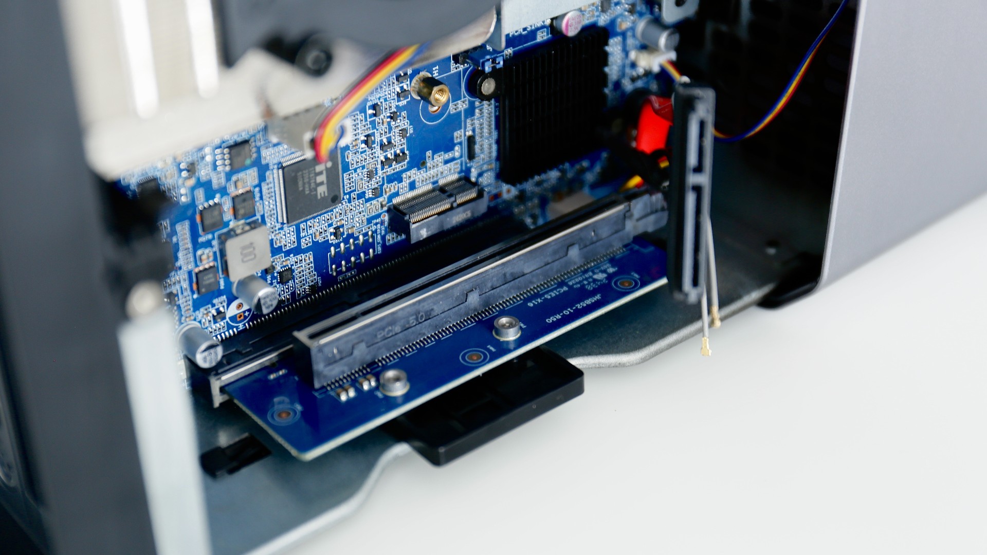 打开WA814内部,沐鸣娱乐可以看到PCle5.0 x16 高速扩展口,它的速度高达64GB/s,可以实现独立显卡、多网口、高速 SSD、多 COM 等设备的扩展。