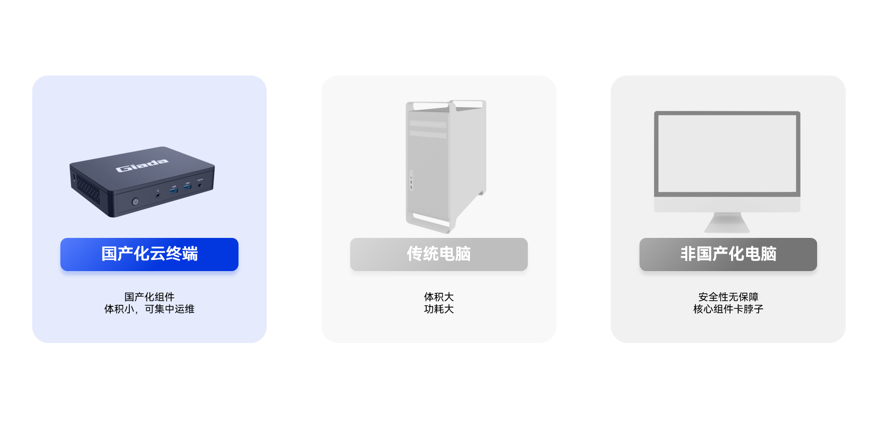 可以说,云终端不是传统电脑的“简化版”,而是随着国产化、信创建设发展而来的“更合适的选择”,它以轻量、稳定、安全的优势,正在成为越来越多行业用户的首选。