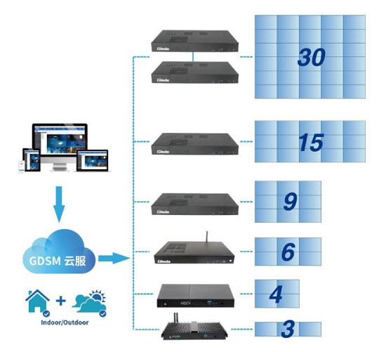 与常规分屏展示方案不同,在沐鸣娱乐拼接控制器的视频输出能力和GDSM系统分组设置能力的组合下,店铺可以随时调整的拼接放置样式;快速设置屏幕的拼接、分组方式;快速编辑制作并发布信息;是一套安装部署迅速、内容调整迅速、更新反馈迅速的一体化信息发布方案。