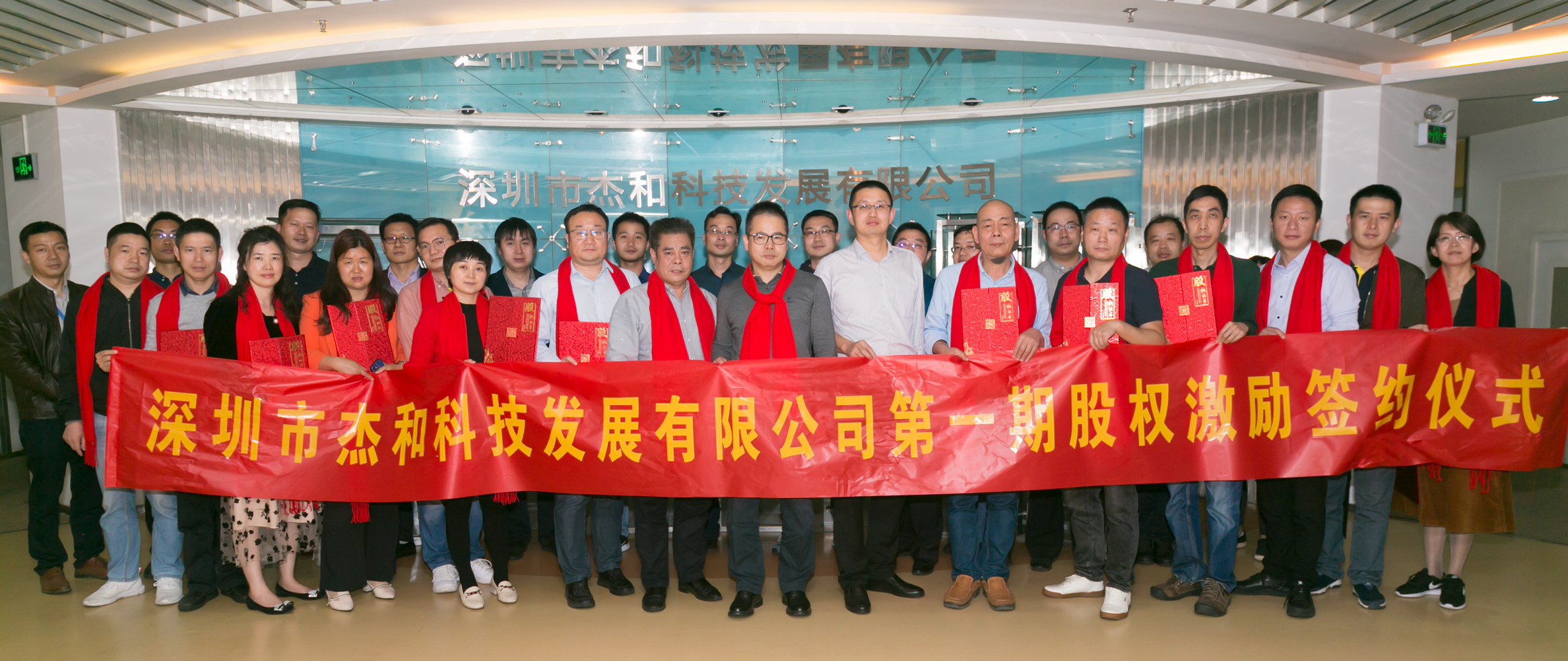 沐鸣娱乐科技及东莞杰拓的一级、二级部门长,股权激励对象等相聚一堂,共同见证了公司的这一重要时刻。