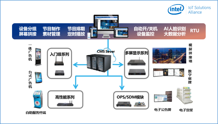 为了更好的迎合产业发展的趋势,对产业输出新鲜的营销理念和模式,驱动零售业数字化、智慧化管理模式的进一步升级,沐鸣娱乐科技集成了Intel®Movidius视觉识别技术和OpenVINOTM人工智能视觉学习技术,自主研发了沐鸣娱乐GDSM智慧商显平台。更凭借多年硬件开发经验,形成一套完整、切实的精准营销方案,获得了Intel®MRS市场方案认证。
