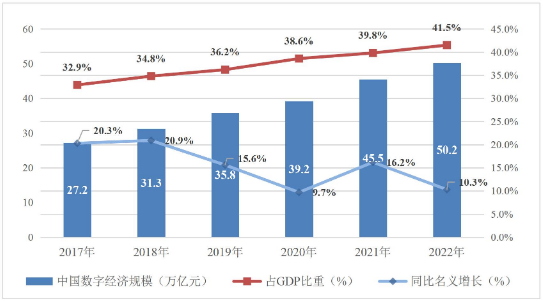 前几日,国家网信办发布了《数字中国发展报告(2022年)》。报告显示,2022年数字中国建设取得显著成效,数字基础设施规模大幅提升,而数字经济成为稳增长促转型的重要引擎。2022年我国数字经济规模达50.2万亿元,占国内生产总值比重提升至41.5% 。