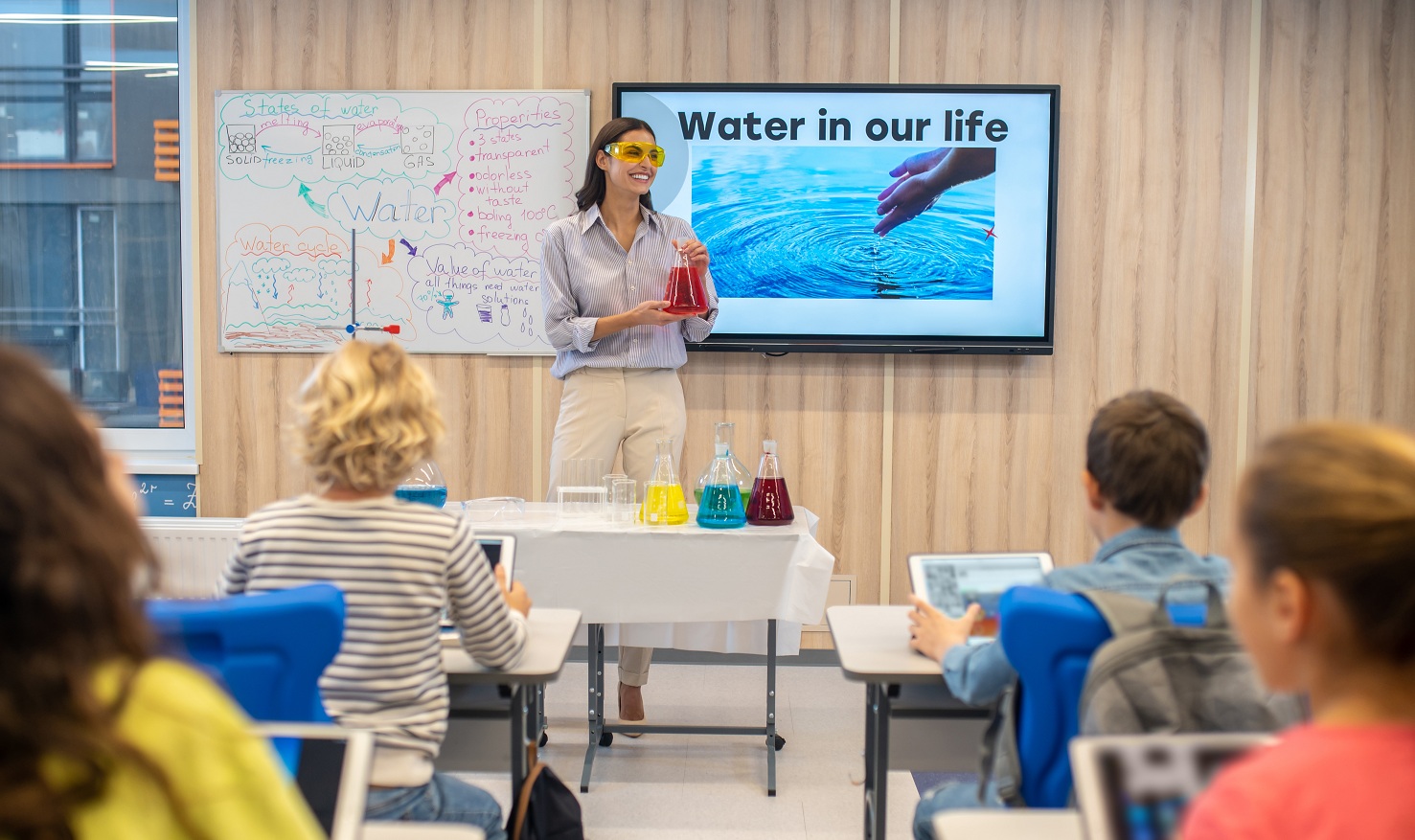 在传统课堂教学的班级授课中,教学主要通过书本的文字图片、老师的讲解进行知识输送,教学模式单一,课堂缺乏生动性和主动参与的积极性。而沐鸣娱乐构建的数字化教学环境中,通过电子白板的应用,用“沉浸式+体验式”的教学方式,趣味性且可视化的展示课程内容,将传统的教室升级为更为智能的数字化“教学空间”,从而推动教学模式的数字化变革。