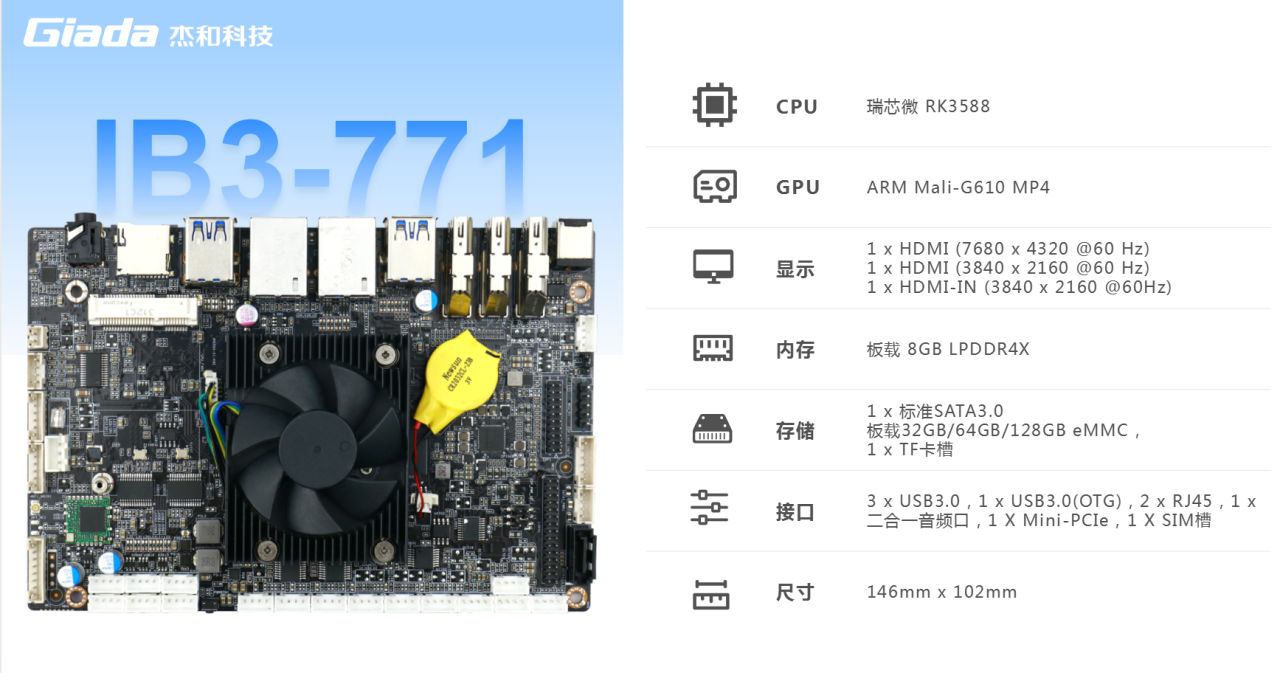 沐鸣娱乐主板IB3-771搭载瑞芯微RK3588八核64位处理器,内置6TOPS算力的NPU,具备高算力、内存大、超强多媒体、多重扩展等技术优势。满足8k超高清视频的显示需求,还支持主流深度学习框架,为各类 AIOT 应用场景提供更优的性能表现,支持机器人、边缘计算、智能NVR、智能汽车、智慧大屏、AR/VR、智能自助终端场景的广泛应用。