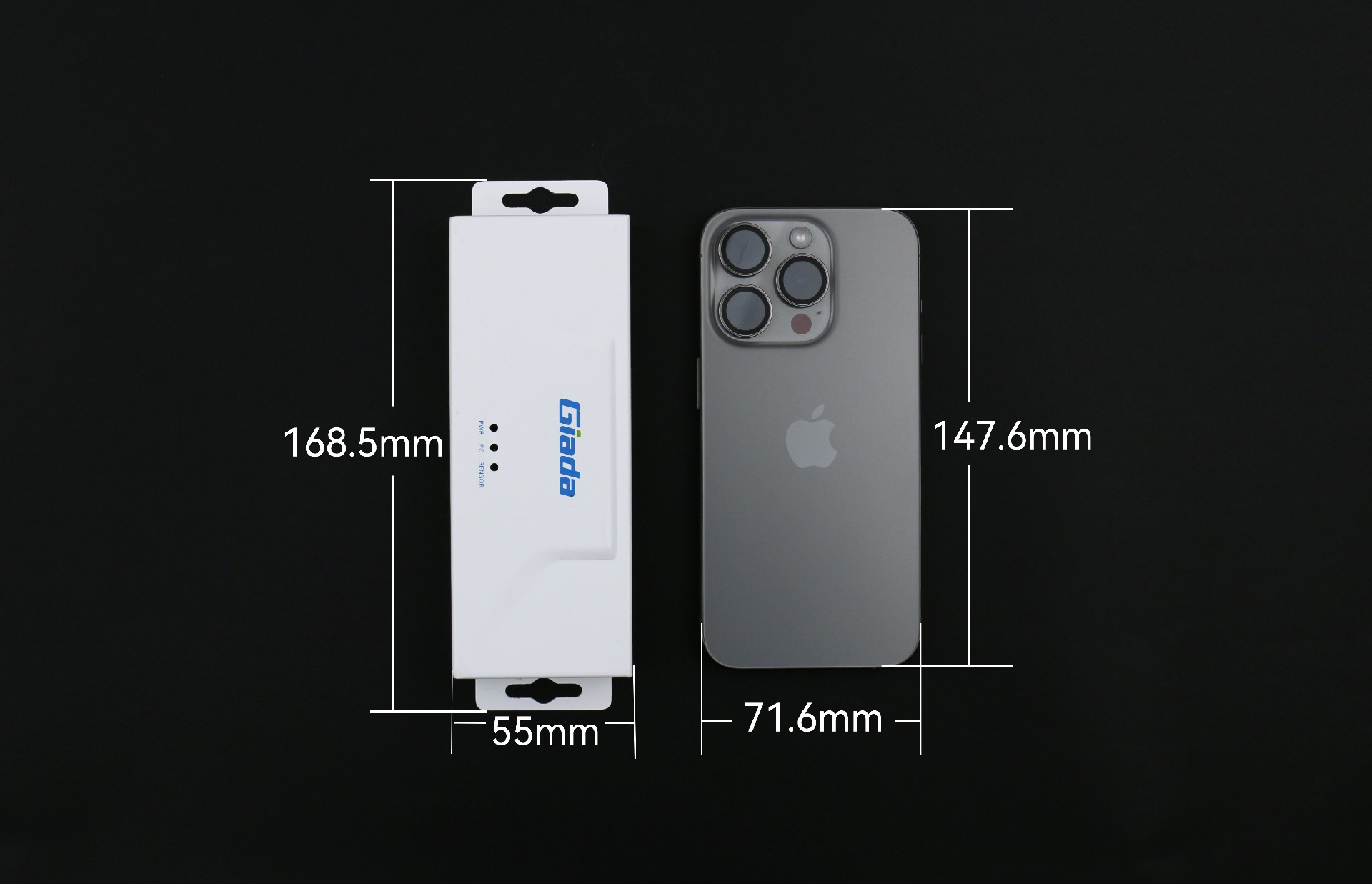沐鸣娱乐RD01的尺寸为168.5 mm x 55 mm x 24mm,与iphone 15的尺寸对比,除去挂耳,中部本体与其高度接近,体积小巧精致。