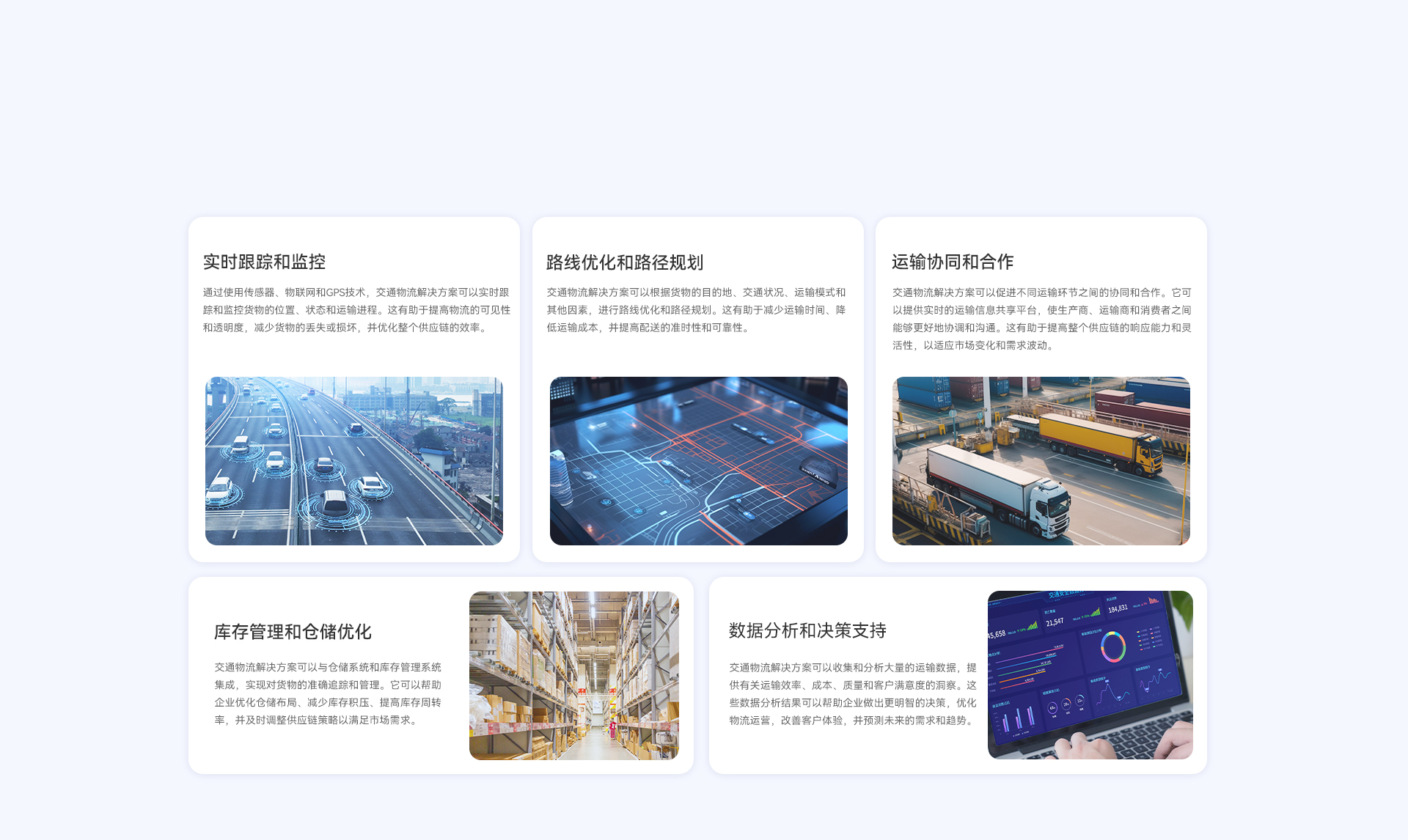 交通物流解决方案可以提供更高效、可靠和可持续的物流运输服务,帮助企业降低成本、提高效率,并提升客户满意度。